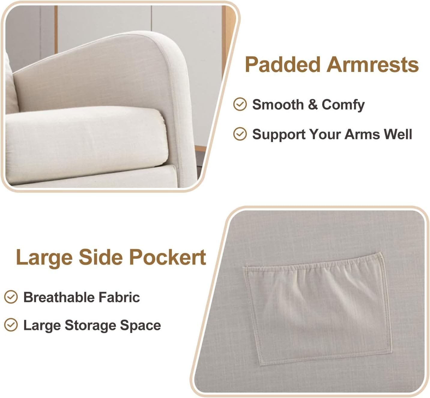 One of the standout features of this rocking chair is the large pocket located on the side of the armrest. This pocket provides a convenient storage solution for magazines, books, or even your TV remote control. You can keep all your essentials within easy reach while enjoying the comfort of the rocking chair.