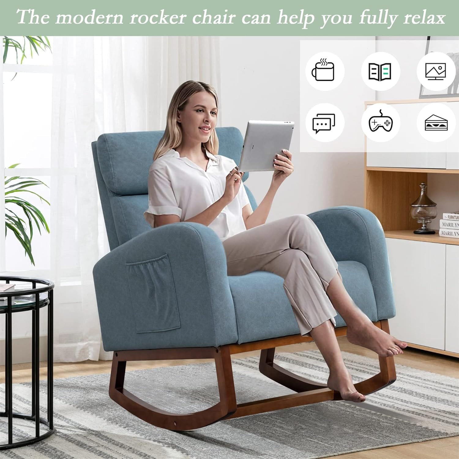 With its versatile design, the Andeworld Rocking Chair can be used as an accent chair in any room of your home. Whether you want to add a touch of elegance to your living room, create a cozy reading corner in your bedroom, or enhance the ambiance of your baby’s nursery, this chair fits the bill. Its stylish blue color and high-back design make it a statement piece in any space.