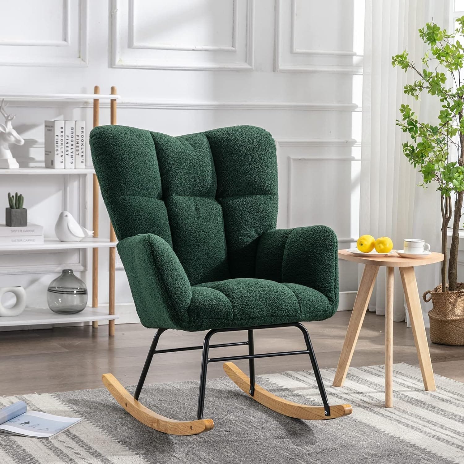 The tufted rocking chair is upholstered in stylish teddy fabric, making it soft and skin-friendly. The use of comfortable high-density sponges ensures ultimate comfort and support, making it the perfect centerpiece for your nursery. And let’s not forget about the joy of parent-child time, as this chair creates a cozy and inviting space for bonding moments.