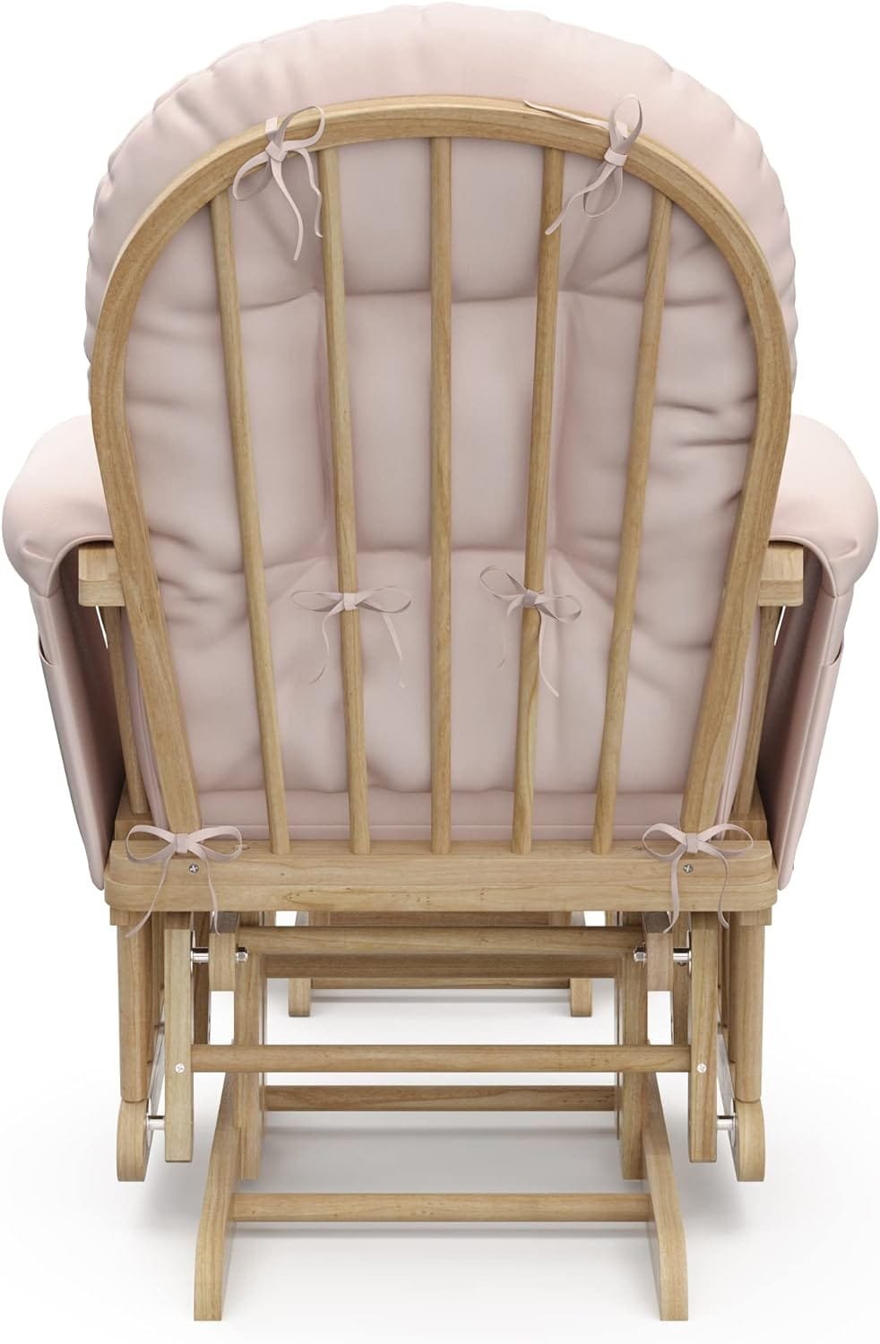 Storkcraft Premium Hoop Glider and Ottoman (Natural/Pink) – Padded Cushions with Storage Pocket, Smooth Rocking Motion, Easy to Assemble, Solid Hardwood Base