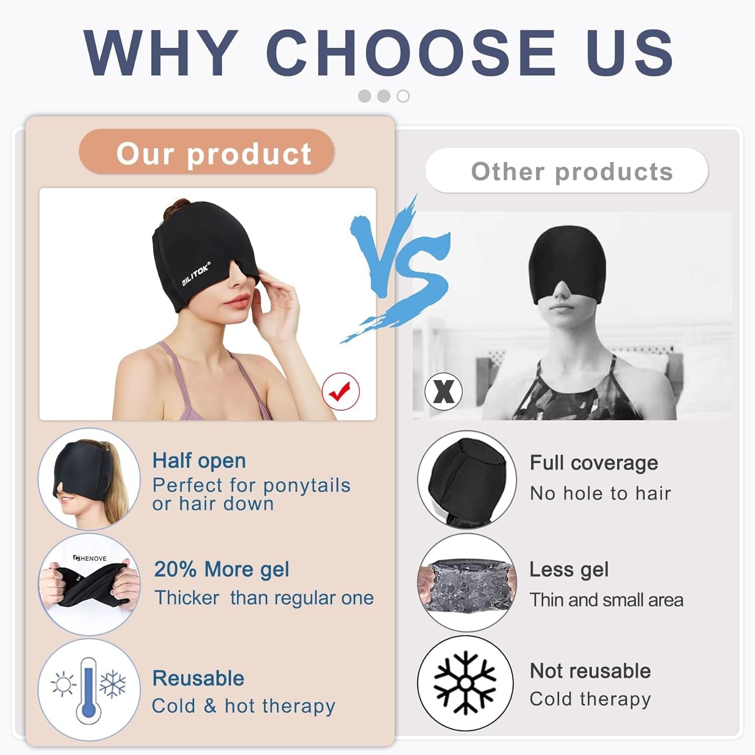 The EXQUISLIFE Migraine Headache Relief Cap is a game-changer for anyone suffering from migraines, sinus pain, tension headaches, or puffy eyes. Its one-piece design provides 360 degrees of cooling coverage, while the gel ice cap offers long-lasting relief. With the option of hot and cold therapy, this cap is versatile and effective.