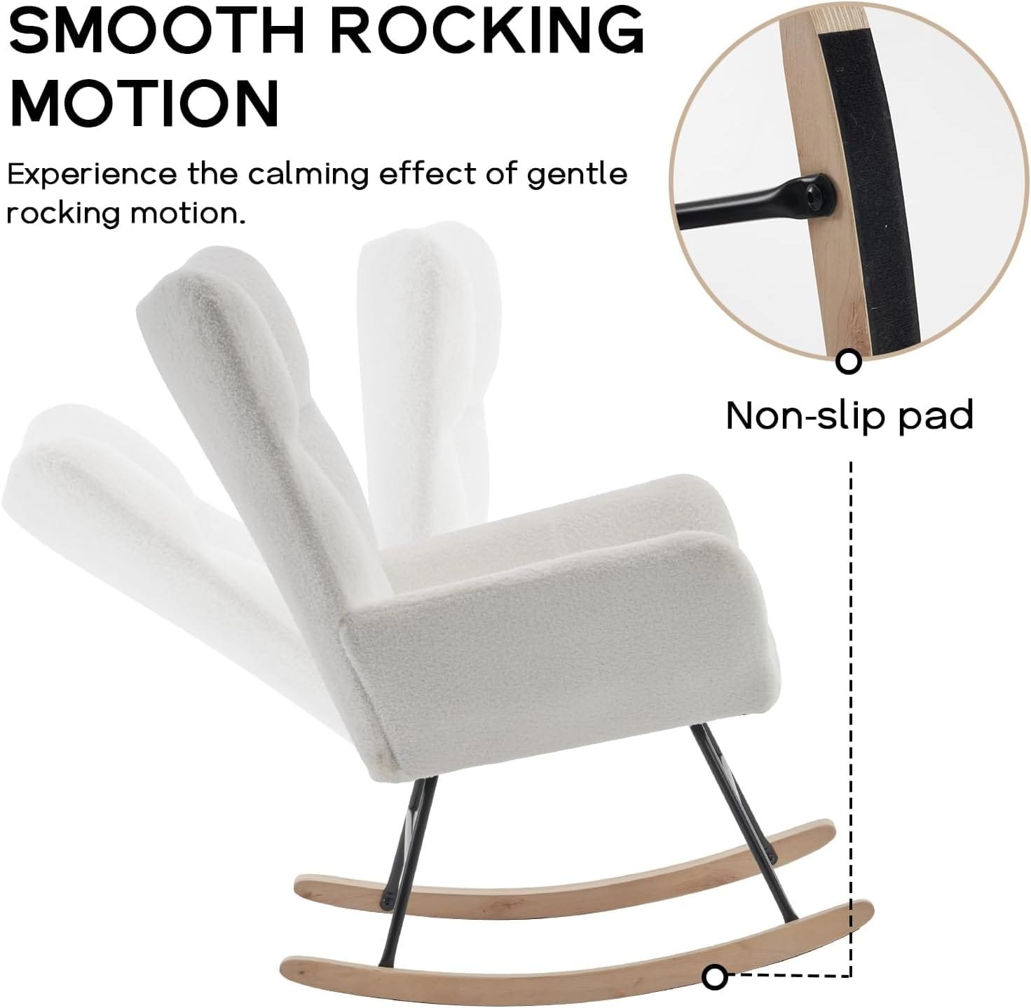 In addition to its practical uses, the NIOIIKIT Nursery Rocking Chair also serves as a stylish accent piece for any room. Its white teddy upholstery adds a touch of elegance and coziness to any space, making it a beautiful addition to your home or office decor.