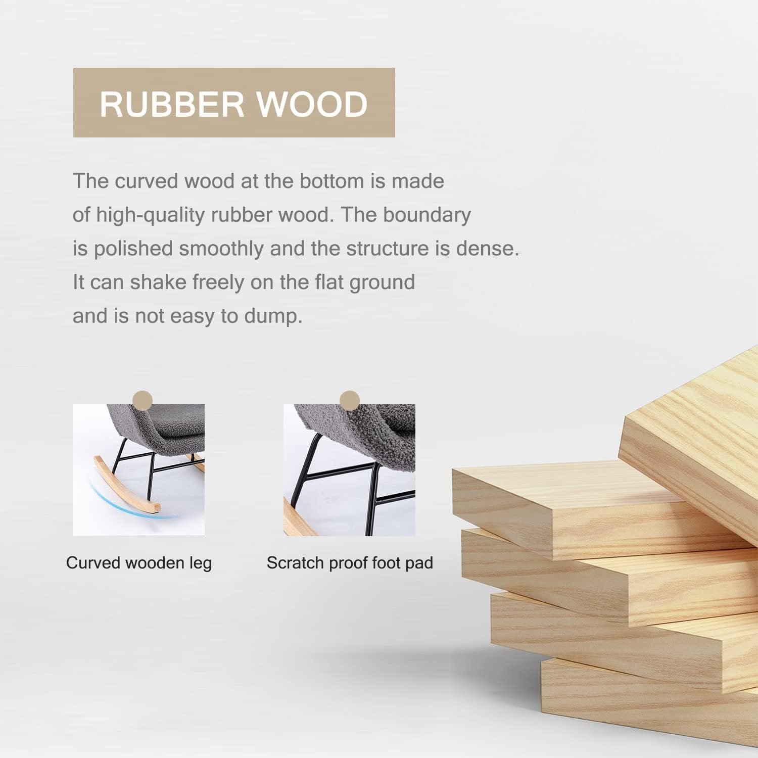 Crafted with a solid wood frame and high-quality metal legs, this rocking chair ensures a safe and stable structure. The inclusion of two additional metal strips between the legs further reinforces the stability of the chair, allowing it to support up to 250 pounds. You can rest assured knowing that this chair will provide you with strong and reliable support.