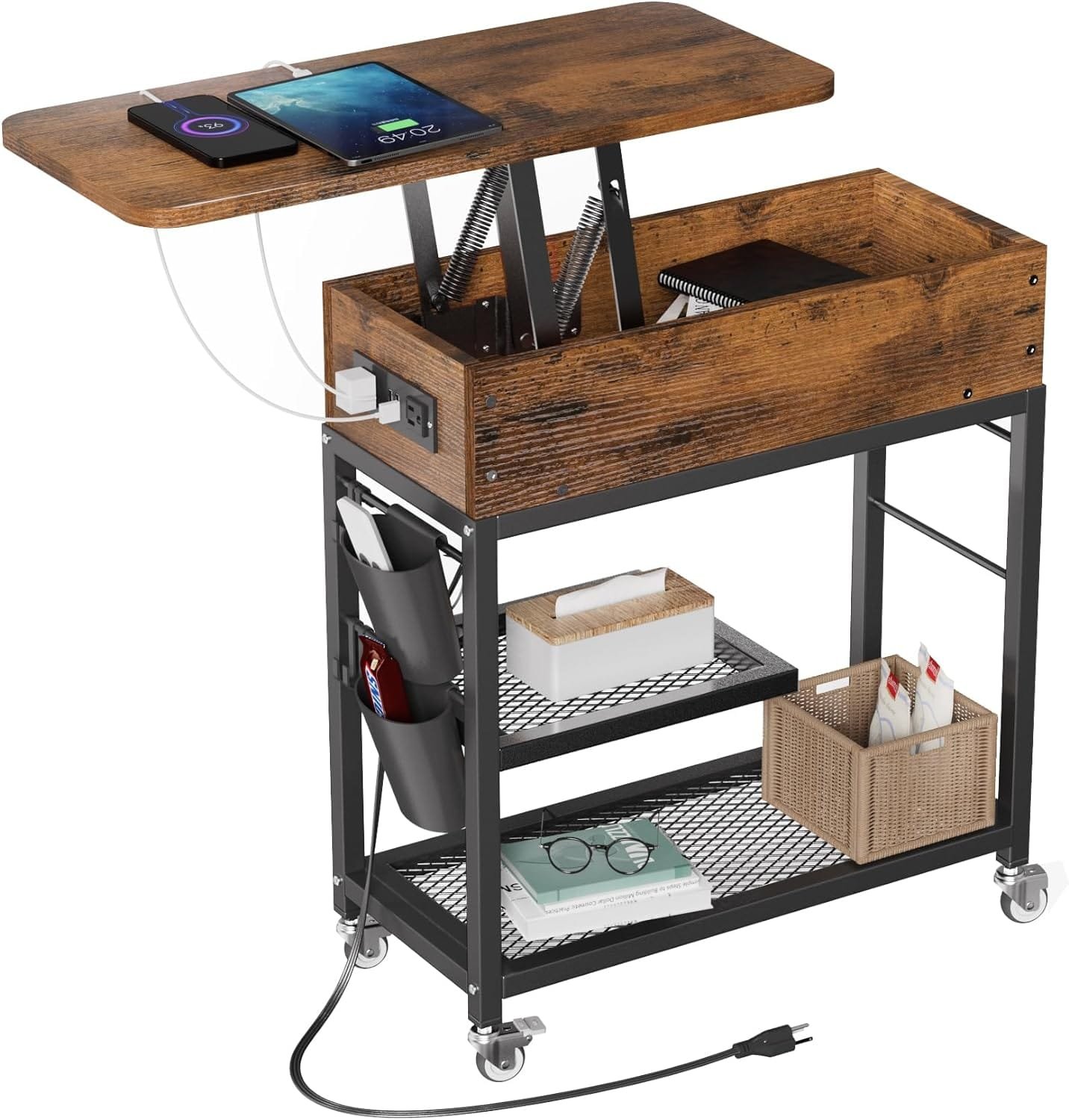 The Merapi Lift-top End Table with Charging Station is a versatile and functional piece of furniture that offers convenience, style, and ample storage space. Its properly designed charging station, sturdy lifting mechanism, and rustic wood industrial retro style make it a valuable addition to any living room, bedroom, or study. With lockable wheels and a hidden top drawer, this end table provides the perfect solution for home organization.