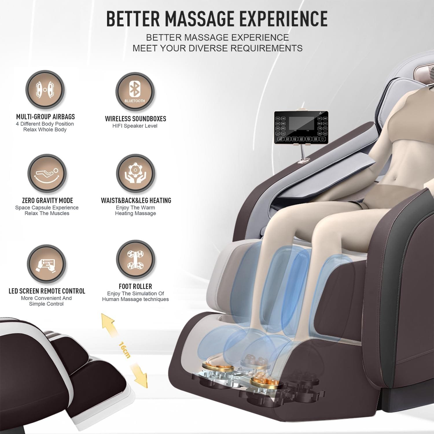 The zero-gravity recline feature of this massage chair elevates your legs to the same level as your heart, reducing pressure on your spine and creating a weightless sensation. This position is known to relieve stress on the body and enhance the overall massage experience. Furthermore, the built-in Bluetooth speakers allow you to stream your favorite music or audio books, further enhancing relaxation and creating a personalized ambiance.