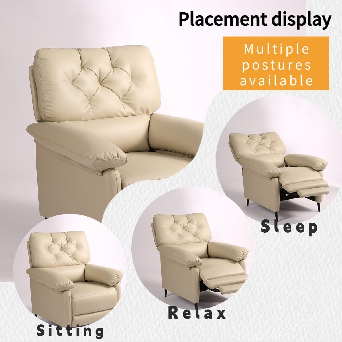 The olimix Recliner Chair features high-end PU leather upholstery, which not only provides a luxurious look but is also easy to clean and maintain. It adds a touch of elegance to any living room decor.