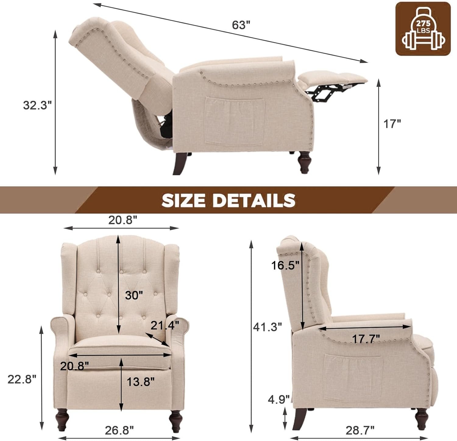 The Oprisen Push Back Recliner Accent Chair also offers several thoughtful design details. It features two side pockets and two front pockets, providing convenient storage for small items within arm’s reach. Additionally, there are cup holders on both sides of the armrests, allowing you to keep your favorite beverage close by. These design elements make this chair not only stylish and functional but also user-friendly.