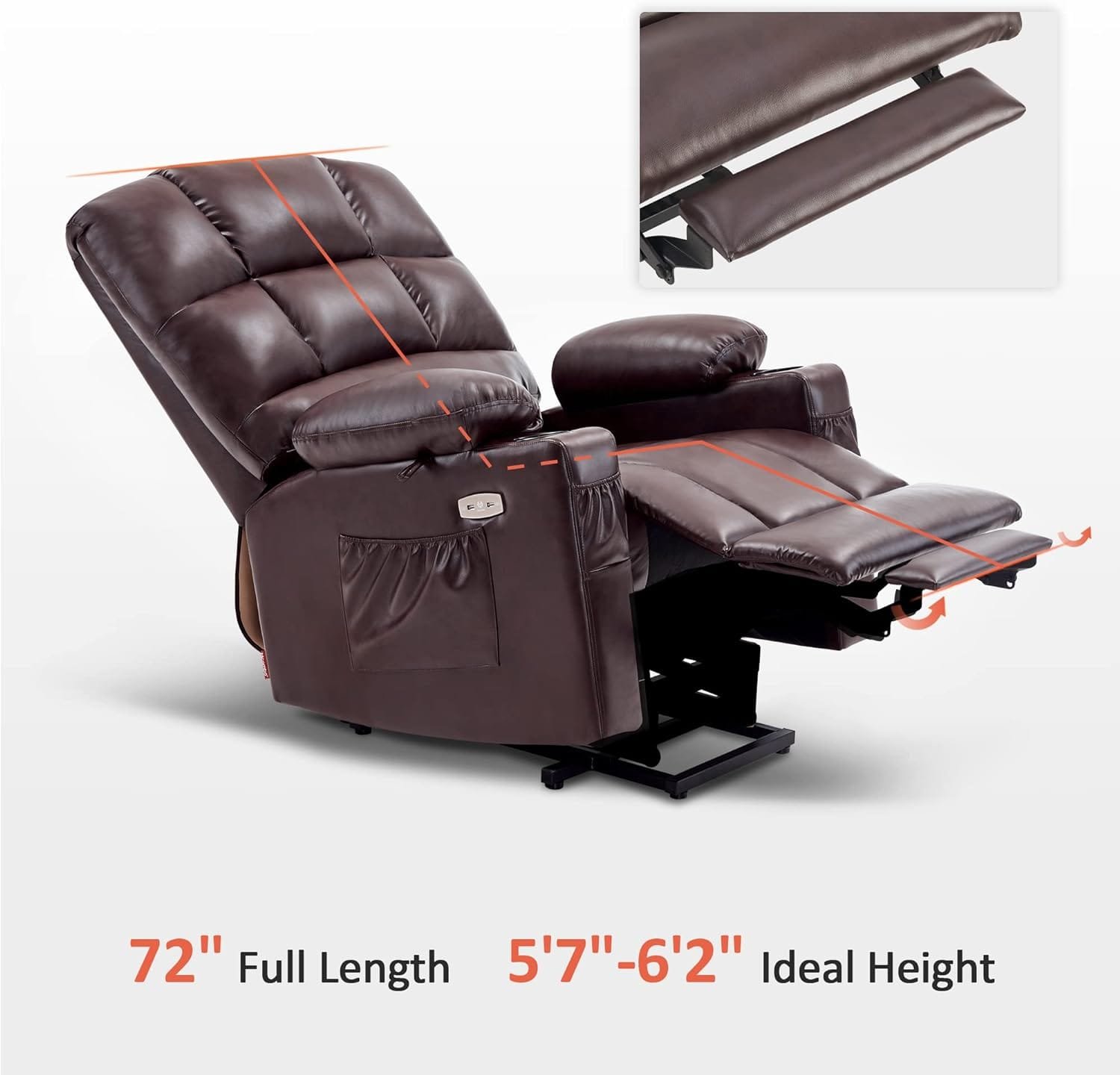 The MCombo Large Lay Flat Dual Motor Power Lift Recliner Chair Sofa is crafted with high-quality materials to ensure durability and longevity. The faux leather upholstery gives it a luxurious and elegant appearance, while also being easy to clean and maintain. The chair’s sturdy construction and reliable dual motor system provide stability and smooth operation.