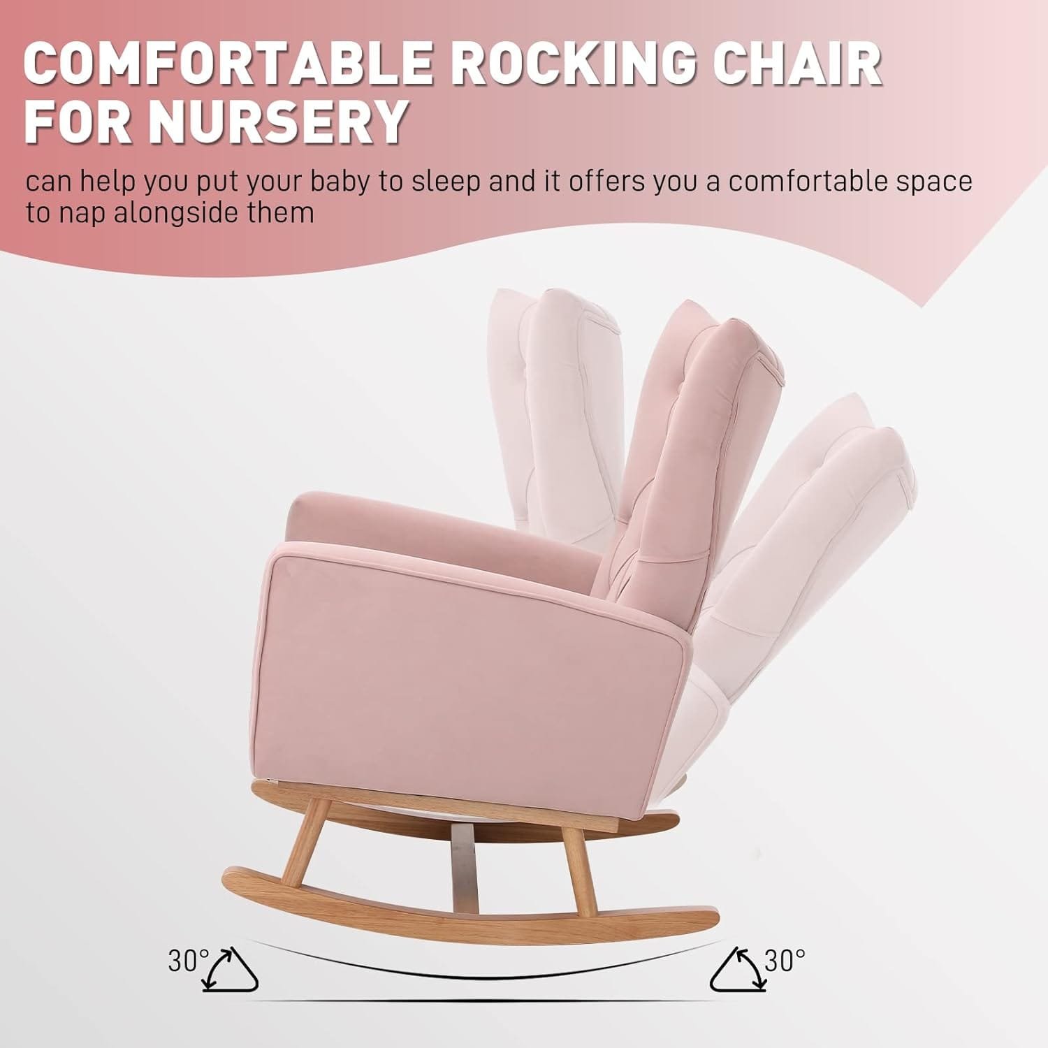 Experience ultimate comfort and relaxation with the Rophefx Rocking Chairs for Baby Nursery Velvet Glider Rocker. This stylish and sturdy chair is not only perfect for soothing the baby to sleep, but also provides a cozy spot for you to unwind and read a book or watch TV. With its ergonomic design, high backrest, and supportive armrests, this rocking chair ensures optimal comfort and support for your spine and arms. Made with a solid wood base and non-slip foot pads, it offers stability and balanced movement with a gentle rocking motion. Covered in high-quality velvet, this chair adds a touch of luxury to any room and is easy to clean. Assembly is quick and easy, allowing you to enjoy the benefits of this rocking chair in no time. If you have any questions or concerns, our friendly customer service team is always ready to assist you. Bring home the Rophefx Rocking Chairs for Baby Nursery Velvet Glider Rocker and experience the perfect blend of comfort and style.