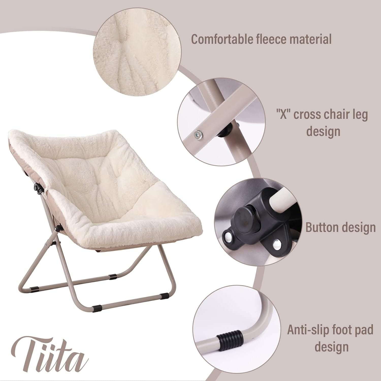 Tiita Comfy Saucer Chair, Soft Faux Fur Oversized Folding Accent Chair, Lounge Lazy Chair for Kids Teens Adults, Metal Frame Moon Chair for Bedroom, Living Room, Dorm Rooms
