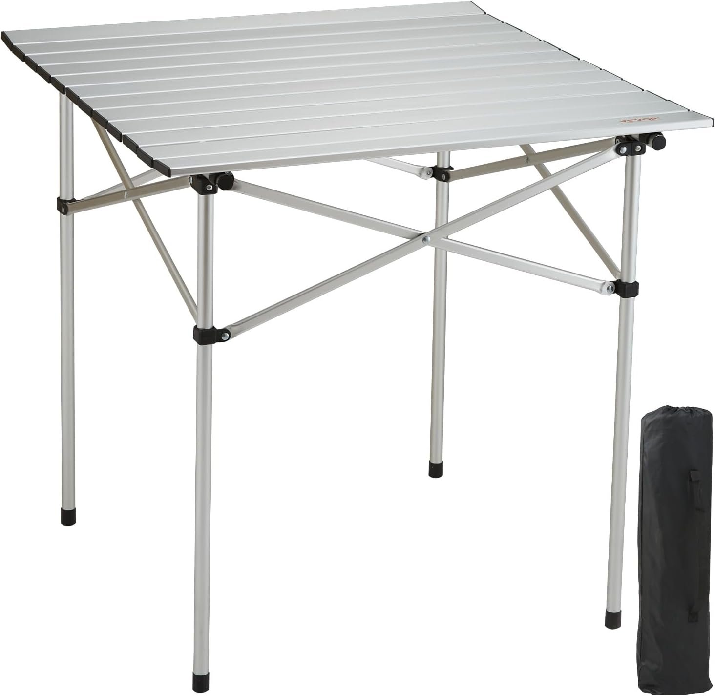VEVOR Folding Camping Table, Outdoor Portable Lightweight Aluminum Ultra Compact Snap-Together Design with Carry Bag, for Cooking, Beach, Picnic, Travel, Grilling, 28'' x 28'', Silver