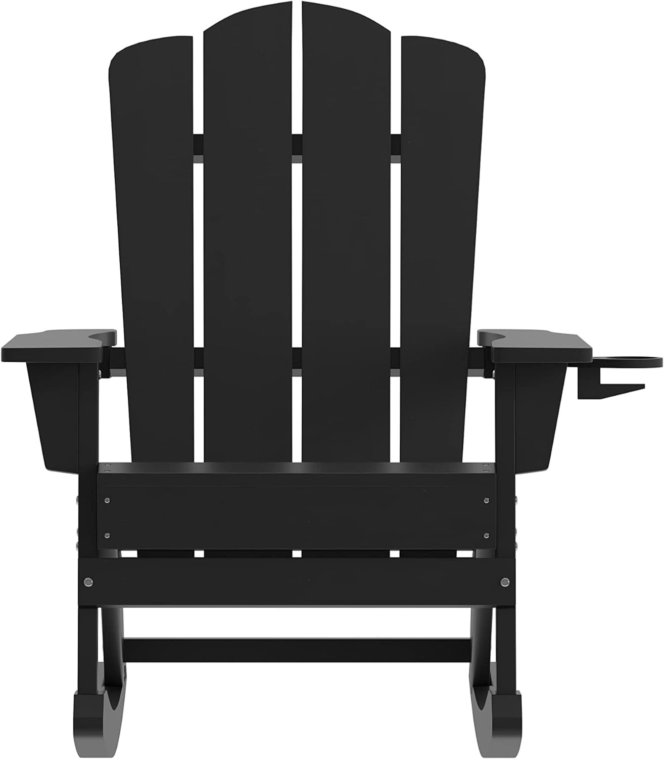 Flash Furniture Halifax Adirondack Rocking Chair with Cup Holder, Weather Resistant Poly Resin Adirondack Rocking Chair, Red
