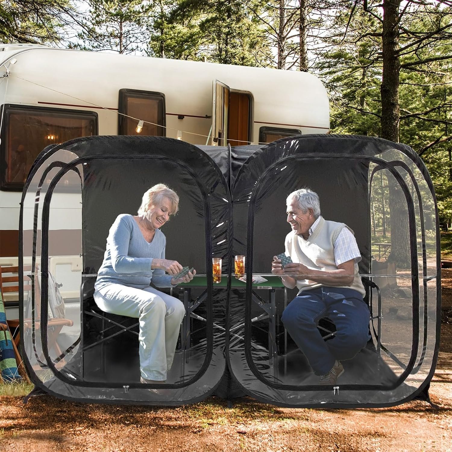 The WeatherPod provides a spacious shelter that can comfortably accommodate up to three adults or a small dining table. With its double-wide XL bubble design, you can enjoy outdoor activities with your friends and family, making the outdoors even more enjoyable.