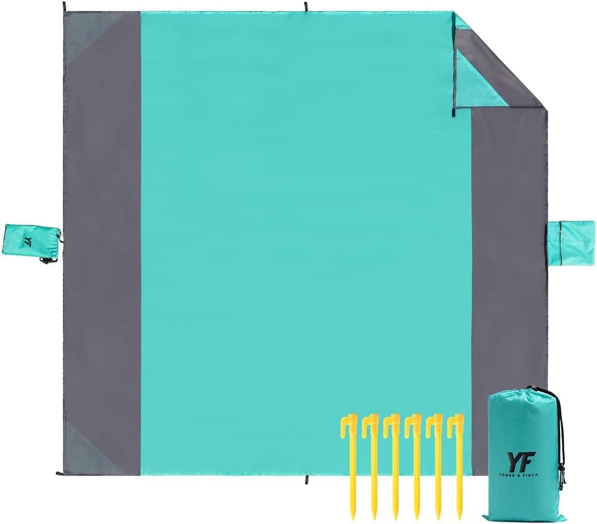 Unlike other camping blankets, the Yonge & Finch beach blanket features a windproof design. It comes with four sandbags fixed under the corners of the mat, allowing you to fill them with sand or rocks to secure the blanket firmly in place, even on windy days. Additionally, it comes with six ground nails to further anchor the blanket, giving you peace of mind when you need to leave it unattended. The attached bag also ensures that you won’t lose it to the wind.